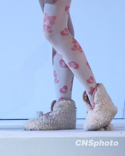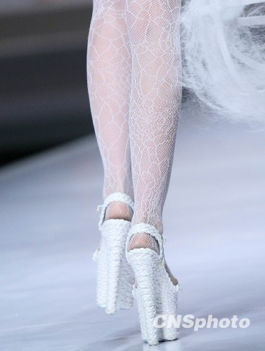 3月27日上午,2010年中國國際時(shí)裝周期間,北京服裝學(xué)院、臺灣實(shí)驗(yàn)大學(xué)2010屆優(yōu)秀畢業(yè)作品展演在北京飯店宴會大廳舉行。在展出的設(shè)計(jì)作品中,各式鞋子與服裝搭配,為設(shè)計(jì)作品增色。中新社發(fā) 陸欣 攝