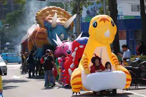 記者在現(xiàn)場(chǎng)看到,除了50只實(shí)體恐龍之外,在文心森林公園內(nèi)占地2公頃的恐龍園區(qū)內(nèi),還區(qū)分了7大部分,包括: 紙風(fēng)車(chē)恐龍家族、紙風(fēng)車(chē)大恐龍、始祖鳥(niǎo)劇場(chǎng)、藝術(shù)創(chuàng)意恐龍區(qū)、可愛(ài)恐龍區(qū)、紙風(fēng)車(chē)恐龍書(shū)店、環(huán)?铸埖,總共有超過(guò)100只的多元形式的恐龍。現(xiàn)場(chǎng)還有三座特制的恐龍蛋視聽(tīng)室,人們只要走進(jìn)恐龍蛋里便可以觀賞到人們只要走進(jìn)恐龍蛋里,便可以觀賞到環(huán)保紀(jì)錄片《正負(fù)2度C》以及“新臺(tái)灣土地故事”影片。