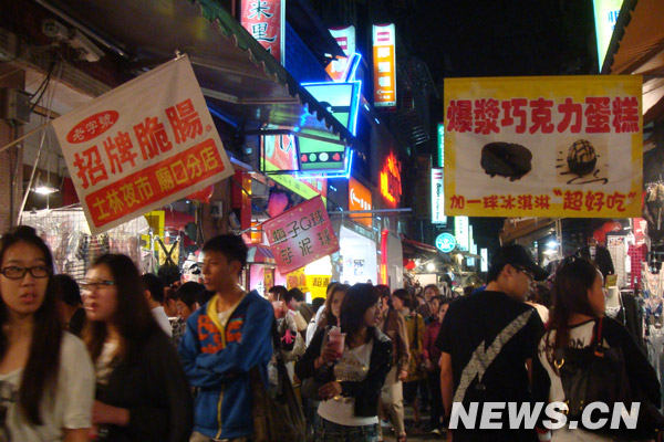 臺(tái)北士林夜市是臺(tái)北著名的夜市,也是臺(tái)北人夜生活的好去處。這個(gè)大型夜市以小吃與攤商為主,目前也成為大陸游客愛去的地方。新華社駐臺(tái)記者 向建國(guó) 攝