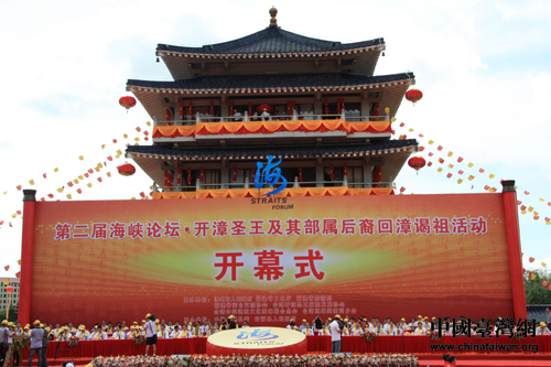 第二屆海峽論壇·開(kāi)漳圣王及其部屬后裔回漳謁祖活動(dòng)暨第四屆海峽兩岸開(kāi)漳圣王文化節(jié)今天上午開(kāi)幕。(中國(guó)臺(tái)灣網(wǎng) 肖燕 攝)
