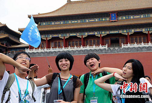 7月7日,全國(guó)臺(tái)聯(lián)“2010年臺(tái)胞青年千人夏令營(yíng)”部分營(yíng)員來(lái)到天安門(mén)廣場(chǎng)和故宮博物院,感受祖國(guó)悠久歷史文化。