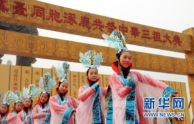 “冀臺(tái)同胞共祭中華三祖大典”上正在進(jìn)行樂(lè)舞祭拜(8月17日攝)。新華社記者 鞏志宏 攝