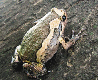 林世忠表示,亞洲錦蛙體型不大,但活動(dòng)力非常強(qiáng),不但會(huì)爬到樹(shù)上吃螞蟻,還曾看到它爬到養(yǎng)蜂箱子里吃蜜蜂,甚至還會(huì)以倒退之姿挖土鉆入地下。“亞洲錦蛙”又名“花狹口蛙”,屬于狹口蛙科,蛙背為褐色,有橘色條紋,體長(zhǎng)可長(zhǎng)到6到8公分,外型圓胖,容易辨識(shí)。