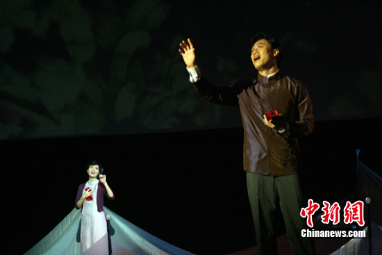 《雙城戀曲》自2008年首演,至今已發(fā)展到第四版,音樂(lè)劇敘述了2008年夏天臺(tái)北女孩裴裴和男孩高楊在上海邂逅,回到各自的城市后只能靠著實(shí)時(shí)通訊,互訴衷腸,交換關(guān)于兩個(gè)城市的記憶,而他們的感情卻喚醒了上上一輩在戰(zhàn)亂中分離的愛(ài)人之間遙遠(yuǎn)的愁緒……述說(shuō)了兩岸牽扯不斷的相思與愛(ài)戀。 (記者 崔佳明)