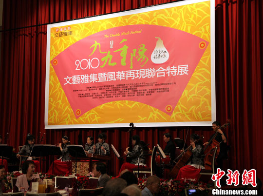 10月14日,臺(tái)灣藝文界舉行一年一度的重陽(yáng)聯(lián)誼活動(dòng)和2010文藝雅集暨風(fēng)華再現(xiàn)聯(lián)合特展。圖為樂(lè)團(tuán)在活動(dòng)上表演節(jié)目。 中新社發(fā) 陳立宇 攝