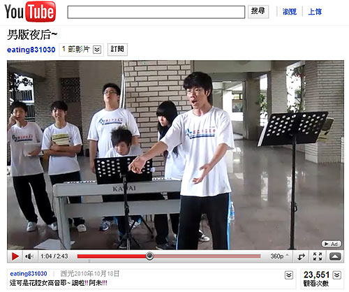 周日晚間網(wǎng)絡(luò)上又流傳一段模仿夜后飆高音的影片,卻是一位還穿著高中制服的男高中生!他在校門口架起譜架和電子琴,音樂班同學(xué)幫他伴奏和錄影,音樂一下只見他揮舞手勢(shì),嗓音跟著越飆越高,眼神專注自若,除了有些趕拍外,沒有降key或任何怯場(chǎng)。演唱結(jié)束,高中生彎腰一鞠躬,現(xiàn)場(chǎng)同學(xué)爆以尖叫和掌聲,十足大家風(fēng)范。