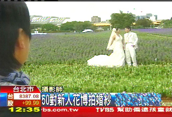 中國(guó)臺(tái)灣網(wǎng)11月1日消息 據(jù)臺(tái)灣TVBS電視臺(tái)報(bào)道,今天(1日),已封閉的臺(tái)北花博園區(qū)為50對(duì)新人特別開(kāi)放,讓新人們?cè)诿利惖幕êV信幕榧喺,大秀恩?ài)。