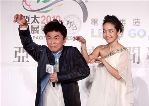 亞太影展頒獎典禮主持人吳宗憲、侯佩岑亮相,兩人一上臺就開始搞笑。 圖片來源:臺灣“今日新聞網(wǎng)”