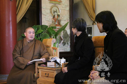 在方丈室,記者們就少林寺在傳播少林文化、慈善活動、恢復(fù)少林藥局及少林寺禪堂等問題,與釋永信方丈進(jìn)行了友好地訪談。