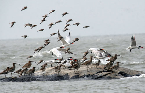 金門進(jìn)入冬季賞鳥季節(jié),來自北方的候鳥紛紛飛抵棲息渡冬,尤其天氣愈冷,鳥況愈好,成為最夯的生態(tài)旅游活動。大金門東北角官澳海邊,7日即出現(xiàn)鷗科、鷸科的鳥群翱翔于海上,共譜冬季戀歌。 圖片來源:“中央社”