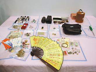 男子黃金生攀爬瓦斯管潛入民宅行竊,圖為他行竊的贓物,多屬容易銷贓的金飾珠寶與現(xiàn)金。