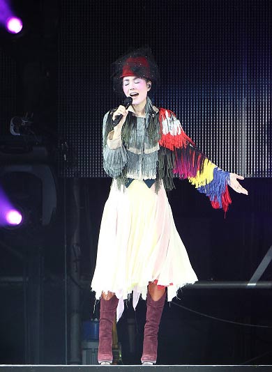 王菲臺(tái)北小巨蛋演唱會(huì)斥資新臺(tái)幣1.5億元打造舞臺(tái),炫麗的雷射、人造雪花、四季變化等特效讓人大飽眼福。(中國臺(tái)灣網(wǎng) 馮存。