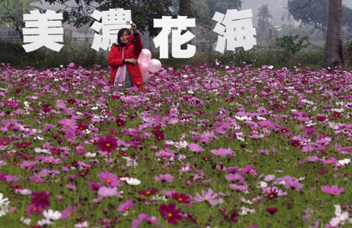 高雄美濃“2011花之樂章”30日舉行開園日,民眾仿佛置身浪漫風(fēng)情,自拍花海美景。 圖片來源:“中央社”