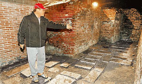 根據(jù)民眾爆料,記者27日晚前往赤崁樓察看,在近百塊石板中,試著翻開三塊石板,赫然發(fā)現(xiàn)其中兩塊也是墓碑,市府文化局長葉澤山聞?dòng)嵑,漏夜冒雨派人先移除這兩塊石板,并決定28日派員逐一檢視所有石板。