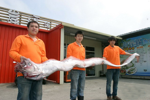 餐廳賴姓廚師說,這尾皇帶魚是龍鳳漁港首次捕獲,可能是日本大地震后,逃難才迷途游到臺灣海峽來,也或許臺灣也要發(fā)生大地震了。(中國臺灣網(wǎng) 馮江)