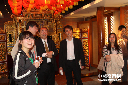 中國臺灣網(wǎng)4月10日北京消息 昨天下午,來自清華大學(xué)、北京大學(xué)等多所高等院校的兩岸學(xué)子在北京市臺灣同胞聯(lián)誼會副會長鄭大的引領(lǐng)下,來到坐落于北京市前門地區(qū)的臺灣會館進(jìn)行參觀學(xué)習(xí)。在主題為“中華魂·京臺情”京臺交流史展覽中,兩岸學(xué)子感受到了百余年來臺灣會館的歷史變遷、京臺交流的新篇章以及祖國人民對寶島同胞的深厚情誼。