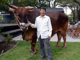 阿發(fā)的黃牛不僅比水牛還碩壯,更是一般黃牛的1倍半,來此旅游的游客,看到黃?偸歉械讲豢伤甲h,常常拿起相機(jī)和黃牛合照。最近有人出高價(jià)想購(gòu)買這頭罕見的大黃牛,阿發(fā)一口回絕,他說“這輩子都不會(huì)賣”。阿發(fā)年輕時(shí)離婚后一直未娶,也沒有小孩,和黃牛建立11年的感情,他說“會(huì)一直養(yǎng)著老牛”。(中國(guó)臺(tái)灣網(wǎng) 張真瑜)