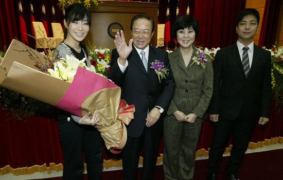 資料圖:關(guān)中就職典禮時,全家人都出席,關(guān)云娣(左)驚艷全場。 來源:臺灣蘋果日報