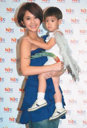 楊丞琳抱著丘比特小童,互動有趣。圖片來源:臺灣《聯(lián)合報(bào)》
