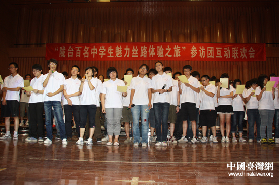 參加“隴臺百名中學(xué)生魅力絲路體驗之旅”的兩岸學(xué)子合唱《明天會更好》(中國臺灣網(wǎng) 宿靜 攝)