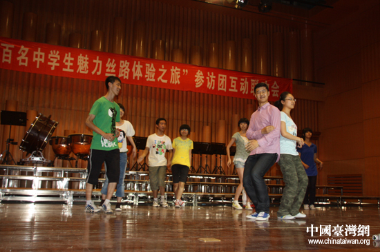 參加“隴臺百名中學(xué)生魅力絲路體驗(yàn)之旅”活動的臺灣學(xué)生表演舞蹈。(中國臺灣網(wǎng) 宿靜 攝)