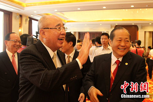 8月25日下午,中國國民黨榮譽主席吳伯雄、副主席蔣孝嚴等臺灣政要及眾多臺商、臺灣知名人士約800人抵達江西南昌,參加在此間舉行的第九屆“贛臺經(jīng)貿(mào)合作研討會”。圖為吳伯雄在參加大會開幕前的賓主見面會。中新社發(fā) 劉占昆 攝