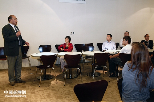 大陸網(wǎng)絡(luò)媒體高層赴臺交流參訪團團長、中國臺灣網(wǎng)副總編輯吳彤(左一)。(中國臺灣網(wǎng) 陳佳慧 攝)