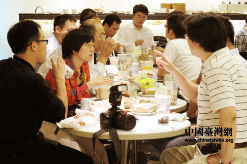 兩岸網(wǎng)絡(luò)媒體人在臺灣小吃的“滿漢全席”中盡情交流。(來源:臺灣蕃薯藤網(wǎng)站)
