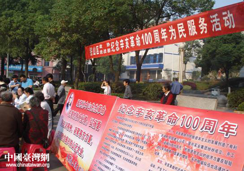 湖北黃石市鐵山區(qū)“紀(jì)念辛亥革命100周年為民服務(wù)活動(dòng)”現(xiàn)場(chǎng)(圖片來(lái)源:黃石市臺(tái)辦)