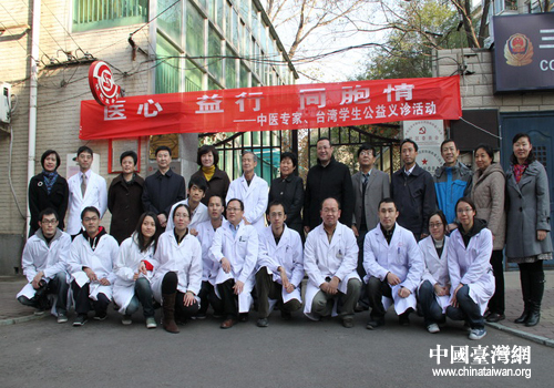 中國(guó)臺(tái)灣網(wǎng)11月25日北京消息 日前,北京朝陽(yáng)區(qū)組織北京中醫(yī)藥大學(xué)中醫(yī)專家和臺(tái)籍學(xué)生,開(kāi)展面向基層、服務(wù)百姓的“醫(yī)心、益行、同胞情”義診公益活動(dòng)。臺(tái)盟北京市委副主委蔡勉、北京朝陽(yáng)區(qū)政協(xié)副主席趙增華、朝陽(yáng)區(qū)委統(tǒng)戰(zhàn)部副部長(zhǎng)石延剛、朝陽(yáng)區(qū)團(tuán)結(jié)湖街道工委書(shū)記張志國(guó)、臺(tái)盟朝陽(yáng)區(qū)工委主任高峰、副主任李秋玲、朝陽(yáng)區(qū)臺(tái)辦副處級(jí)調(diào)研員金剛等領(lǐng)導(dǎo)出席義診啟動(dòng)儀式。