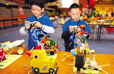 12月11日,“2011少年科技創(chuàng)作競賽——仿生機(jī)器人創(chuàng)作暨城市杯邀請賽”在臺灣師范大學(xué)舉辦,來自大陸和臺港澳地區(qū)的百余個代表隊參賽,小選手們競相展示自己的科技創(chuàng)新能力,并在比賽中交流和學(xué)習(xí)其他選手的科技創(chuàng)意。