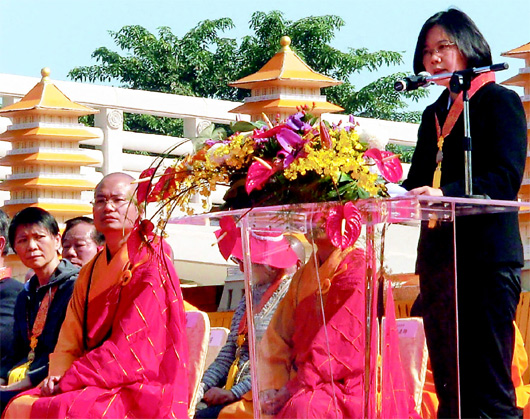 蔡英文指出,佛光山將佛教良善精神,用各種方式深入人間,對(duì)凈化人心、建立健康、正向的社會(huì)價(jià)值有很大的影響力。