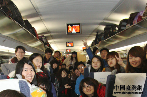 兩岸學(xué)子開心體驗(yàn)京滬高鐵。(中國(guó)臺(tái)灣網(wǎng) 郭瑩瑩 攝)