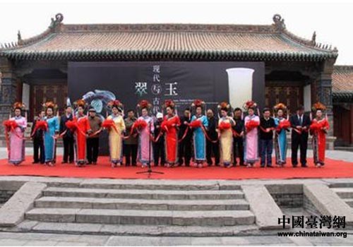 “翠與玉——現(xiàn)代與古代的對(duì)話”藝術(shù)展開(kāi)幕儀式現(xiàn)場(chǎng)。(圖片來(lái)源:沈陽(yáng)市臺(tái)辦)