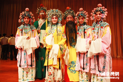 7月8日,由北京師范大學(xué)以雅昆曲社、臺(tái)灣師范大學(xué)昆曲研究社聯(lián)合宋慶齡基金會(huì)舉辦的“月圓兩岸明——兩岸昆曲交流匯演”在北京師范大學(xué)舉行。來(lái)自海峽兩岸的昆曲愛(ài)好者攜手為觀眾帶來(lái)昆曲盛宴。圖為來(lái)自臺(tái)灣師范大學(xué)昆曲研究社的老師和學(xué)生。(中國(guó)臺(tái)灣網(wǎng) 孟雅詩(shī) 攝)