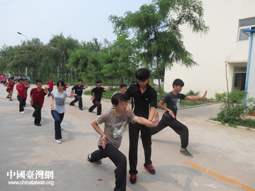 中國臺灣網(wǎng)7月30日壽光消息 日前,來自臺灣中華武術(shù)總會、臺北市士林區(qū)武術(shù)協(xié)會、彰化縣武術(shù)協(xié)會、臺北湖田小學的青少年朋友們在山東壽光少林武術(shù)院內(nèi),跟著少林武術(shù)院的教練們一招一式認真學起了少林功夫,與少林武術(shù)院的學員們切磋武藝、交流心得,為第四屆魯臺青少年武術(shù)文化交流活動的正式開幕和武術(shù)交流大賽做準備。