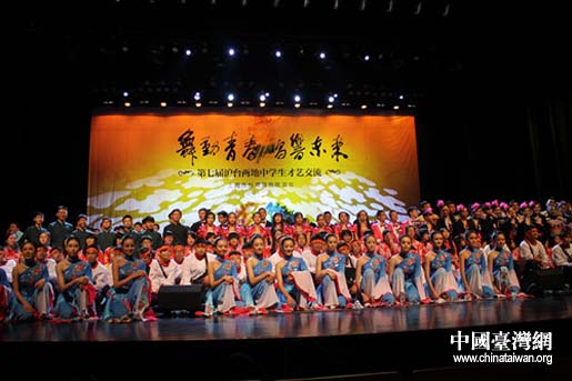 “舞動(dòng)青春 唱響未來(lái)”——第七屆滬臺(tái)兩地中學(xué)生才藝交流在上海舉行,圖為兩岸中學(xué)生才藝表演后合影留念。(圖片來(lái)源:上海市臺(tái)聯(lián))