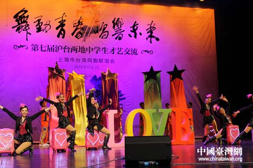 中國(guó)臺(tái)灣網(wǎng)8月20日上海消息 日前,由上海市臺(tái)灣同胞聯(lián)誼會(huì)主辦的“舞動(dòng)青春 唱響未來(lái)”——第七屆滬臺(tái)兩地中學(xué)生才藝交流在上海文化廣場(chǎng)揭幕。上海市委常委、上海海外聯(lián)誼會(huì)會(huì)長(zhǎng)沙海林、上海市臺(tái)辦副主任李雷鳴、上海海外聯(lián)誼會(huì)副會(huì)長(zhǎng)丁志堅(jiān)、上海市文廣局副局長(zhǎng)貝兆健以及臺(tái)灣地區(qū)民意代表陳淑慧、楊瓊瓔等出席。中共中央候補(bǔ)委員、上海市臺(tái)灣同胞聯(lián)誼會(huì)會(huì)長(zhǎng)林明月,中國(guó)國(guó)民黨榮譽(yù)主席吳伯雄夫人戴美玉分別致詞。