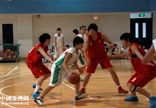 24日下午,北京青年女籃與臺灣臺北女子第一高中女子籃球隊展開一場跨越海峽的友誼賽,雙方“以球會友”。(中國臺灣網(wǎng) 普燕 攝)