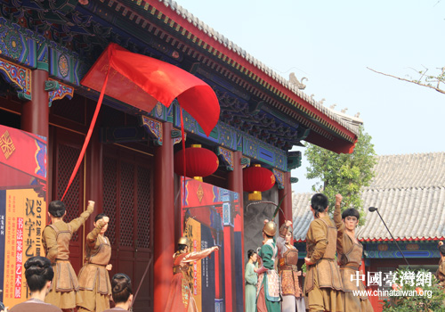 中國臺灣網(wǎng)9月20日棗莊消息 近日,第三屆兩岸漢字藝術(shù)節(jié)在山東省棗莊市舉行,臺灣漢唐樂府一行70余人前來助興表演,給兩岸游客上演了一場穿越時空的“藝術(shù)盛宴”。置身其中,仿佛時光倒轉(zhuǎn)。表演將觀眾從嘈雜的塵世中帶進了遙遠的漢唐時代,讓觀眾與漢唐壁畫中的仕女們進行了一次清新地交流。