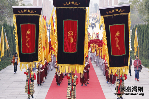 主祭隊(duì)伍沿著祭祀大道前往祭祀廣場(chǎng)。(中國(guó)臺(tái)灣網(wǎng) 陳睿 攝)