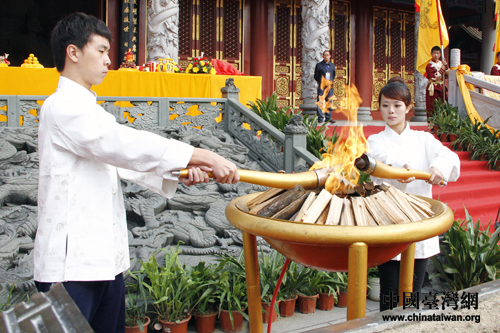 今年的祭祀大典融合了臺(tái)灣民間祭祀的文化傳統(tǒng),使整場(chǎng)活動(dòng)亮點(diǎn)不斷。祭祀大典中,來(lái)自大陸與臺(tái)灣的兩位圣火手共同點(diǎn)燃了圣火,以期表達(dá)炎黃子孫對(duì)炎帝的敬意與感激,同時(shí)將兩岸同胞的手足之情表達(dá)的淋漓盡致;祭祀儀式中由東莞臺(tái)商子弟學(xué)校的64位童男童女著古裝獻(xiàn)上的“八佾舞”是我國(guó)古代規(guī)格最高的祭祀舞蹈,它既是中華傳統(tǒng)的重要組成部分,也是對(duì)“禮”的最好詮釋;在炎帝陵御碑園,由兩岸嘉賓共同栽植的“同根樹”,則象征著兩岸的一脈中華情。兩岸信眾堅(jiān)信象征兩岸炎黃子孫情誼的“同根樹”,在炎帝的見證與兩岸人民共同努力下,定會(huì)茁壯成長(zhǎng)。(中國(guó)臺(tái)灣網(wǎng)記者 陳睿)