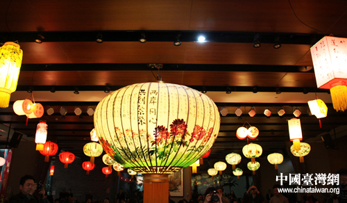 2013臺(tái)胞元宵祈福燈會(huì)于2月23日農(nóng)歷正月十四在京舉行,活動(dòng)現(xiàn)場(chǎng)懸掛著兩岸書畫家手繪的百余個(gè)燈籠,美輪美奐。ㄖ袊(guó)臺(tái)灣網(wǎng) 楊永青 攝)