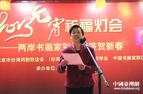 中國(guó)臺(tái)灣網(wǎng)2月23日北京消息 由北京市臺(tái)聯(lián)策劃,特邀臺(tái)灣中華現(xiàn)代國(guó)畫研究學(xué)會(huì)和中國(guó)書畫家聯(lián)誼會(huì)共同主辦的“元宵祈福燈會(huì)——兩岸書畫家彩繪燈籠賀新春”今日在北京臺(tái)灣會(huì)館舉行。近兩百位在京臺(tái)胞、臺(tái)商、臺(tái)生與兩岸書畫家歡聚一堂,共度元宵佳節(jié)。