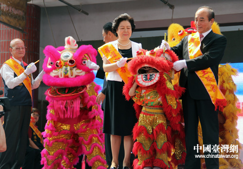 兩岸嘉賓為舞獅“點(diǎn)睛”。(中國臺(tái)灣網(wǎng) 李典典 攝)