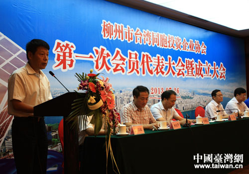中國臺(tái)灣網(wǎng)7月29日柳州消息 日前,廣西柳州市臺(tái)灣同胞投資企業(yè)協(xié)會(huì)成立大會(huì)在柳州飯店會(huì)議中心隆重舉行。經(jīng)投票選舉,柳州市福臻車體股份有限公司副董事長柯達(dá)華當(dāng)選首任會(huì)長。廣西自治區(qū)臺(tái)辦主任劉侃,柳州市委副書記蘇海棠出席大會(huì)并為柳州市臺(tái)協(xié)會(huì)揭牌。