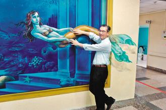 黃姓民眾表示,昨天(2日)到埔里分院探望住院朋友,一走進(jìn)院內(nèi)大廳嚇一跳,以為到了海洋生態(tài)博物館,大面墻壁中的魚(yú)群游來(lái)游去,好自在悠閑,心情頓時(shí)舒坦起來(lái),大海豚好像朝他游過(guò)來(lái),真是好玩極了,連的樓梯也是彩色的海洋世界,令他驚奇不已。