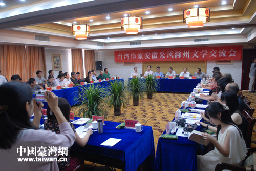 中國(guó)臺(tái)灣網(wǎng)9月5日滁州消息 9月1日至3日,以臺(tái)灣夏潮基金會(huì)董事長(zhǎng)宋東文為團(tuán)長(zhǎng)的臺(tái)灣作家安徽采風(fēng)團(tuán)一行到滁州參訪(fǎng)交流。滁州市委副書(shū)記孔曉宏,市委常委、紀(jì)委書(shū)記戴啟遠(yuǎn)會(huì)見(jiàn)了采風(fēng)團(tuán)。