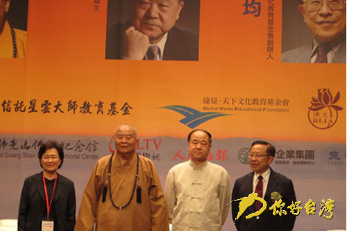 在活動現(xiàn)場,莫言與佛光山開山宗長星云法師、教授高希均對話,探討人文和生命哲理,幽默而不離智慧。莫言說,童年記憶深處是他源源不絕的創(chuàng)作靈感,負面的慾望往往成為貪慾的來源,慾望沒有適度,就會造成災難。