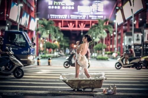 其實這張在信義區(qū)街頭拍的照片讓不少人驚艷,仔細瞧瞧這名正妹,不顧車來車往把浴缸搬到斑馬線,當街全裸洗泡泡浴,重點部位全靠泡沫遮掩,唯美又大膽的作品開始在網絡瘋傳。照片曝光后,網友火速找到剛從政大畢業(yè)的林亮亮,個人社交網站也有她外拍的一系列美照,精致五官在鏡頭前頗上相。浴缸照曝光后,人氣更是暴漲,還有人懷疑是合成照。